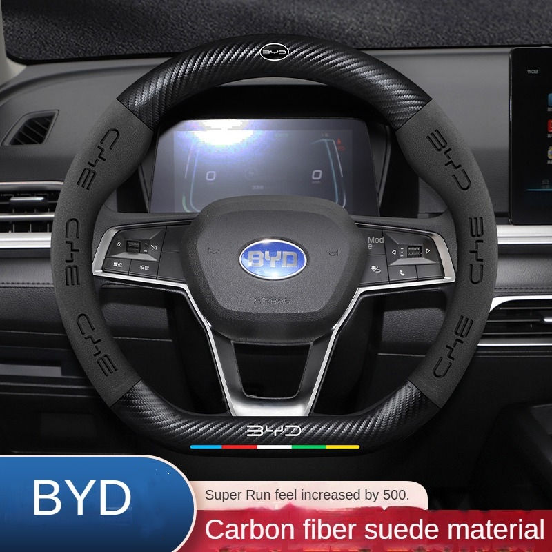 BYD Car Steering Wheel Cover Carbon Fiber Suede