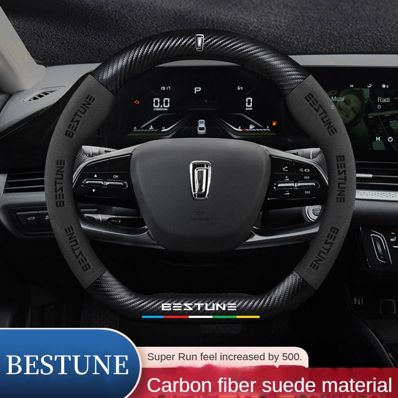 BESTUNE Car Steering Wheel Cover Carbon Fiber Suede